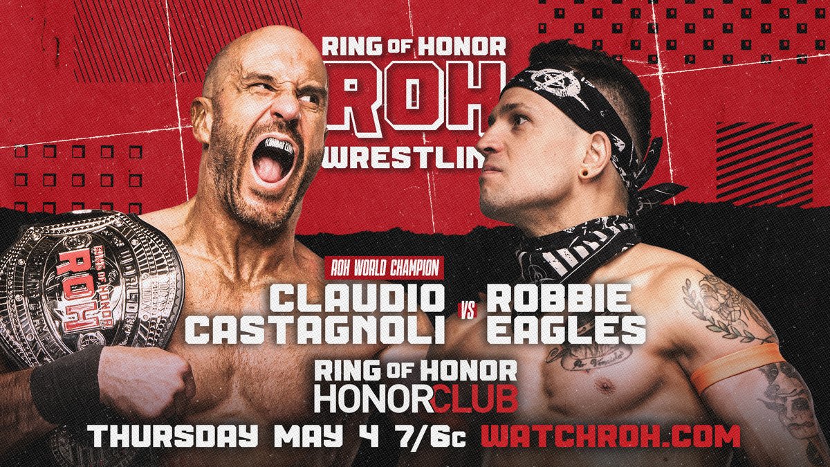 Ring of Honor World Champion Claudio Castagnoli will be part of this Thursday’s ROH on HonorClub as he faces Robbie Eagles.