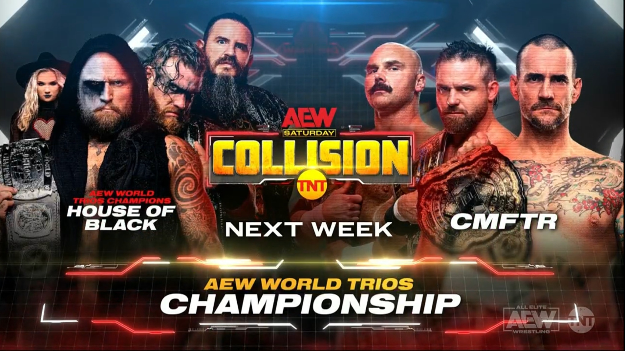 - AEW Trios Champions House of Black (Malakai Black, Brody King & Buddy Matthews) defend against CMFTR (CM Punk, Dax Harwood & Cash Wheeler)