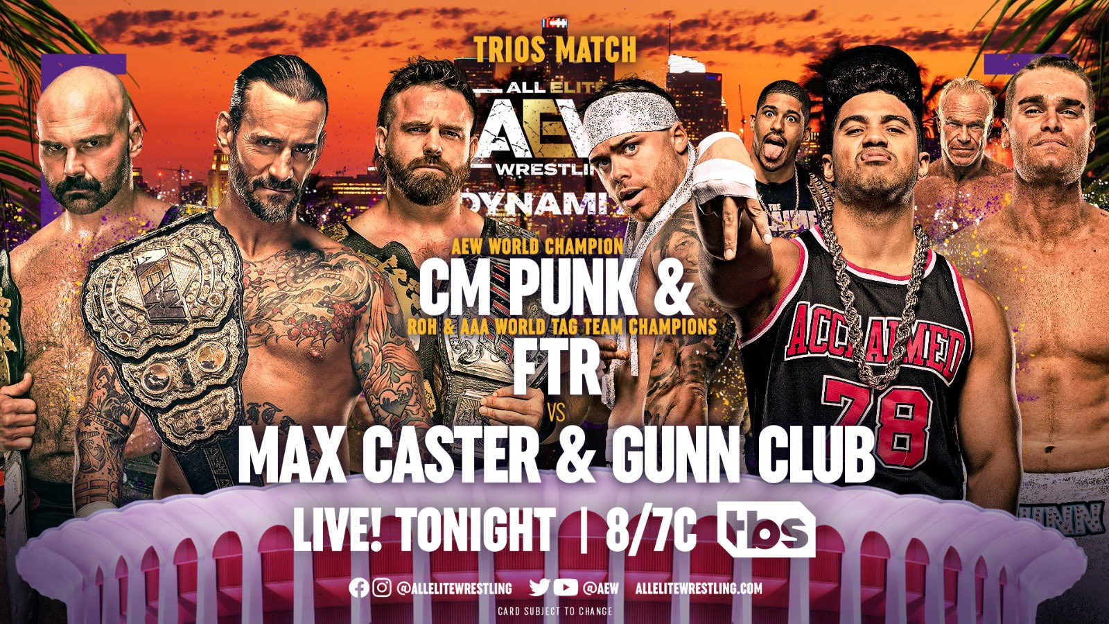 Tony Khan revealed on Wednesday that Punk will team with FTR to face Max Caster and the Gunn Club on the show. The match comes after Dax Harwood & Cash Wheeler came out to celebrate with Punk following his title victory at Double or Nothing.