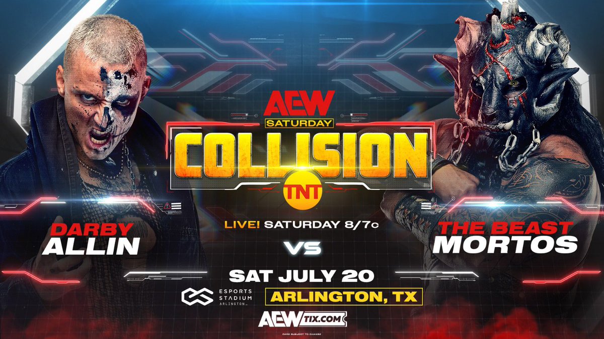 AEW’s Tony Khan announced a Darby Allin vs. The Beast Mortos singles match for the Saturday, July 20 Collision in a social media post.