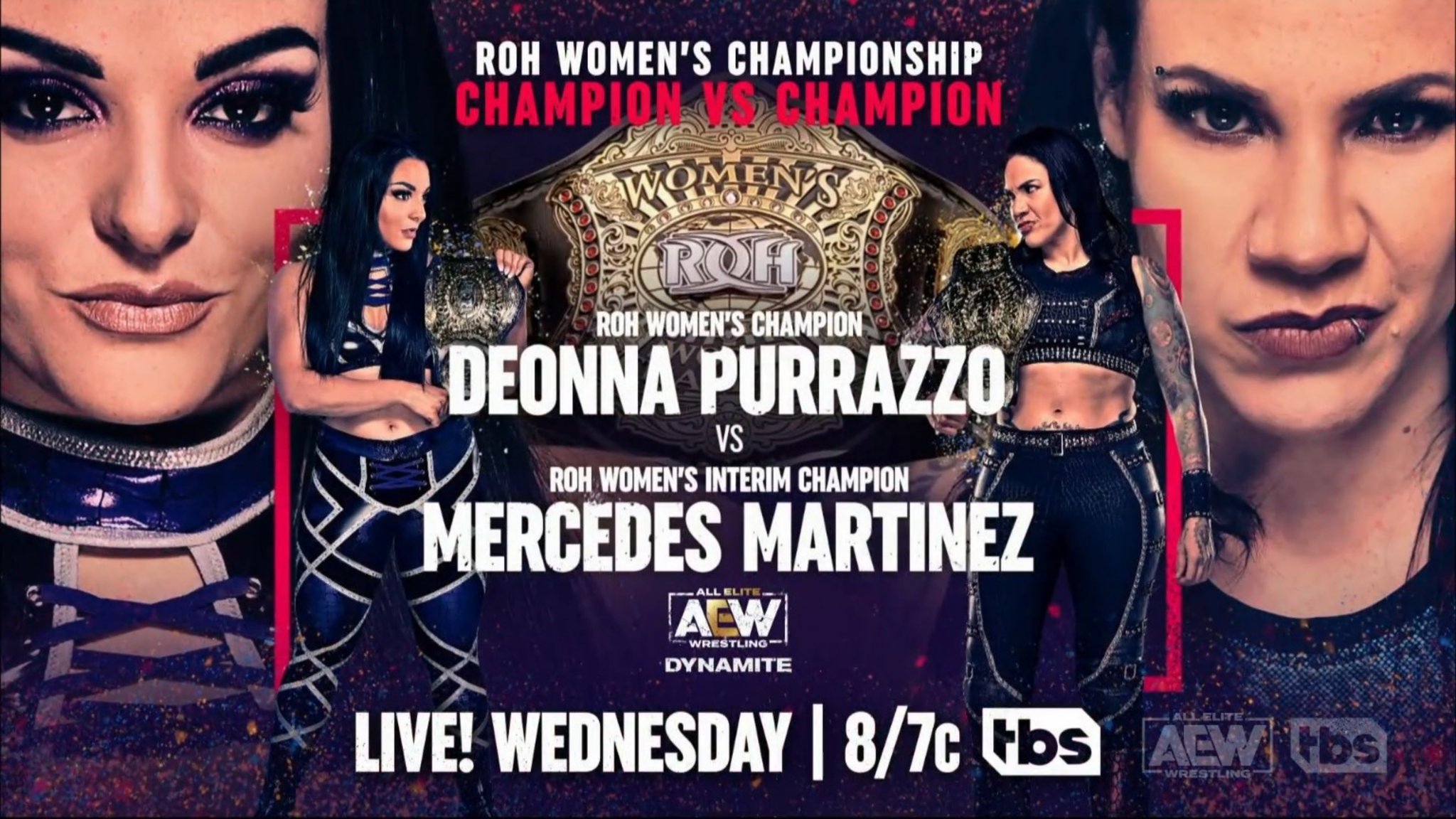 ROH Women’s World Champion Purrazzo will face interim ROH Women’s World Champion Mercedes Martinez in a title unification match on Dynamite. Martinez was crowned interim champ after Purrazzo was unable to defend the title at Supercard of Honor earlier this month.