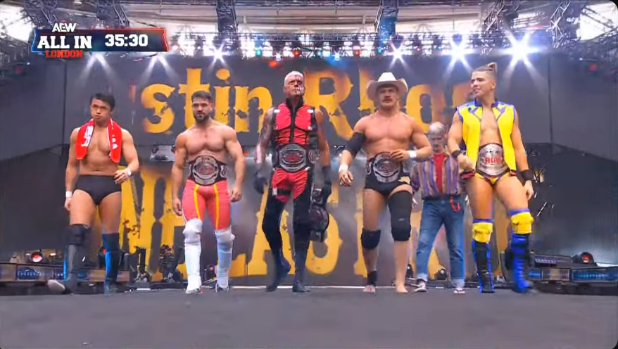 Brian Cage, Bishop Kaun, Toa Liona, Matt Taven & Mike Bennett were the opponents for Rhodes and his team at All In. Rhodes & Guevara won the ROH Tag Team titles from Taven & Bennett earlier this month. In July, Rhodes & The Von Erichs defeated Taven, Bennett & Roderick Strong for the ROH Six-Man titles.