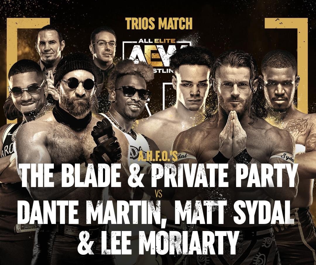The show will feature three members of the AHFO as Private Party and The Blade will take on Dante Martin, Matt Sydal and Lee Moriarty in trios action.