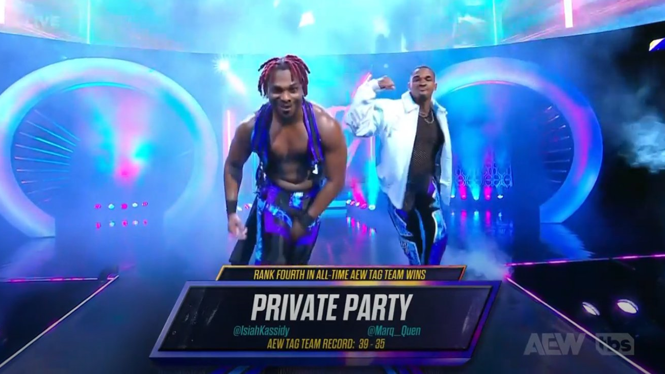 As revealed during Wednesday’s Dynamite, Private Party’s Isiah Kassidy & Marq Quen will team with Katsuyori Shibata in a trios bout against The Young Bucks and Jack Perry. Shibata is set to challenge Perry for the TNT Championship at WrestleDream, while Private Party are next in line to challenge The Young Bucks for the AEW Tag Team titles.