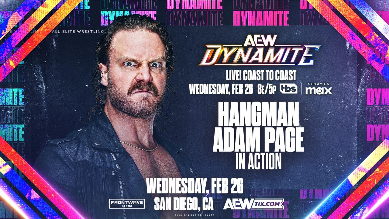 It was announced on social media Monday that Hangman Page will be in action against an unnamed opponent this Wednesday in Oceanside. It was also announced that MJF would be appearing live following the events that took place on last week’s show.