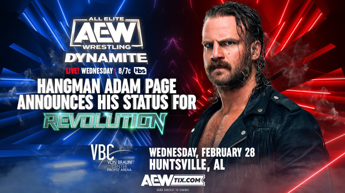 On AEW Dynamite this Wednesday, we’ll find out if Hangman Page is going to compete at Revolution.