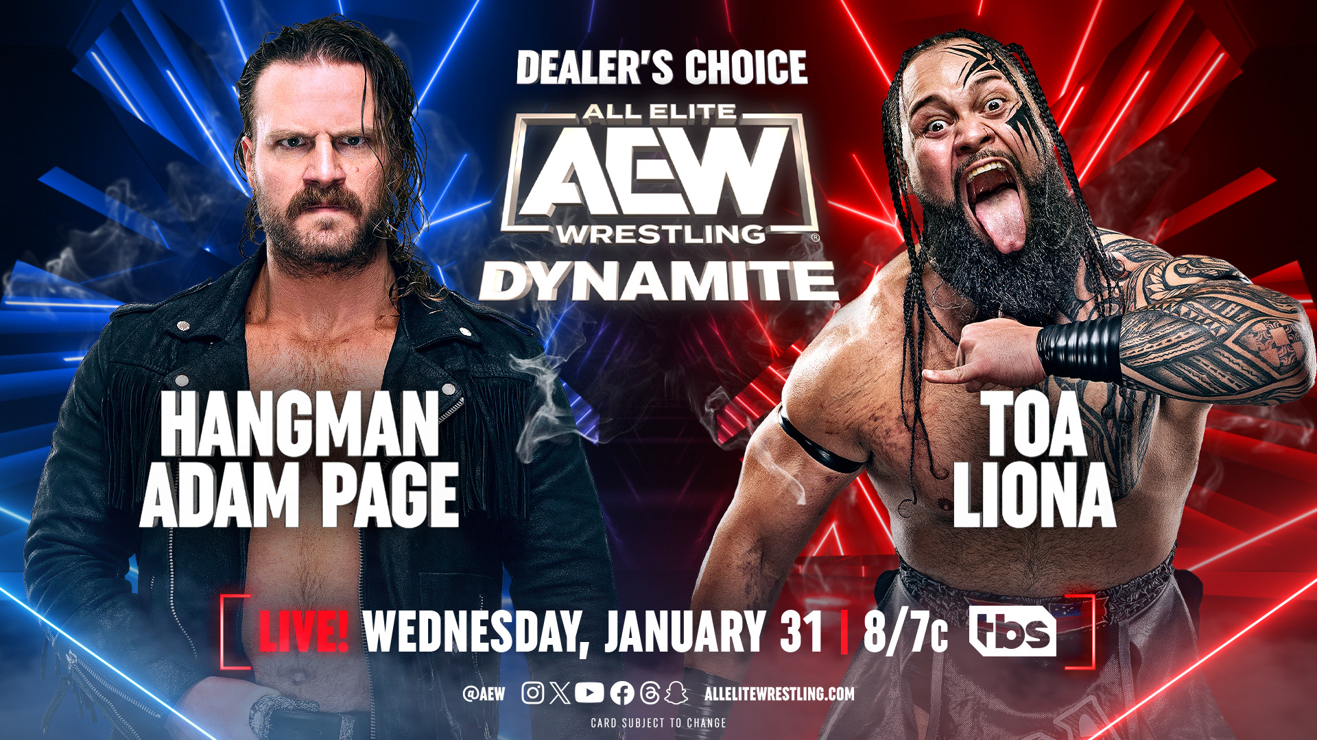In the first reveal of two Dealer’s Choice matches, Hangman Page will take on Toa Liona on this Wednesday’s Dynamite.