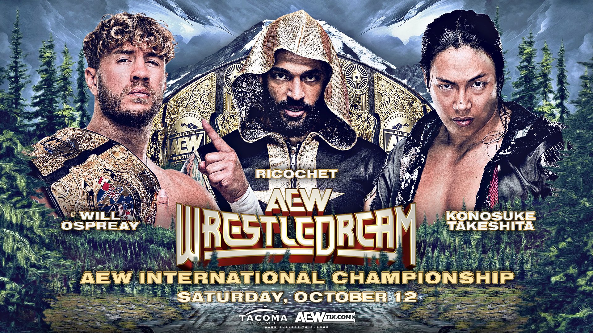 Following a controversial finish to an Ospreay vs. Ricochet title match on Wednesday’s Dynamite fifth anniversary where Konosuke Takeshita ran in to cause a DQ, AEW’s Tony Khan announced in a social media post after the show that Ospreay vs. Ricochet vs. Takeshita for the International title is official for WrestleDream: