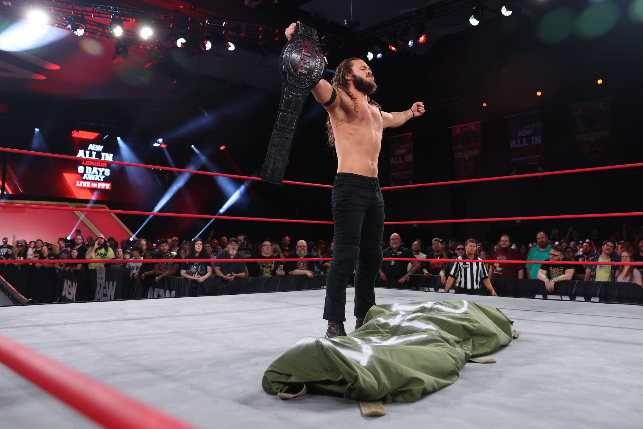 Perry won the title at Forbidden Door in a six-way ladder match. His only defense thus far came against Marko Stunt on the July 6 episode of AEW Collision. Perry is scheduled to defend the belt against Darby Allin in a Coffin Match at AEW All In.