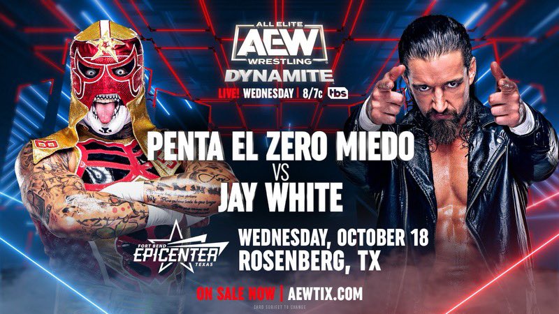 In a first time ever clash, Jay White will take on Penta El Zero Miedo as part of this Wednesday’s AEW Dynamite.