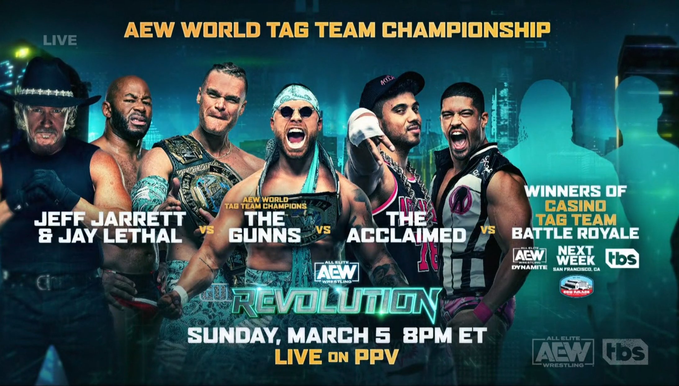 AEW Tag Team Champions The Gunns, and former title holders The Acclaimed are already set for the Revolution bout, with one team still to be decided on next week’s Dynamite.