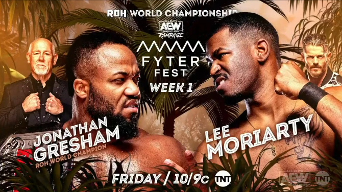 ROH World Champion Jonathan Gresham will defend the title against Lee Moriarty on next Friday’s Fyter Fest edition of AEW Rampage.
