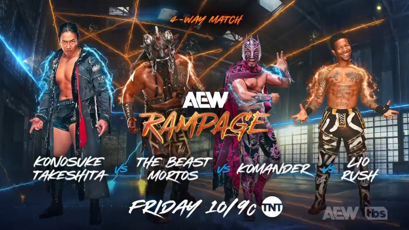 A four-way bout with Takeshita vs. The Beast Mortos vs. Komander vs. Lio Rush is one of five matches set for the Friday, August 30 Rampage taped Wednesday night.