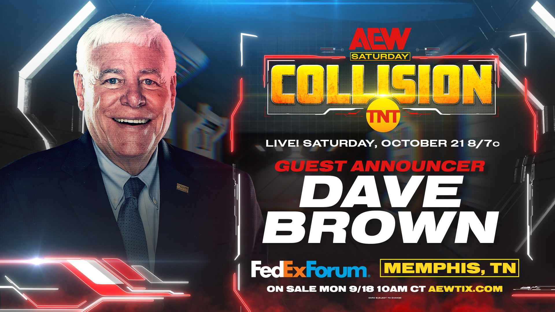 AEW has announced that Dave Brown will be a guest commentator on Saturday, October 21, when Collision takes place at the FedEx Forum. Brown and Lance Russell were the long-time hosts of Memphis Wrestling in the region. He has also been the chief meteorologist for WMC-TV, Memphis’ NBC affiliate, since 1977.
