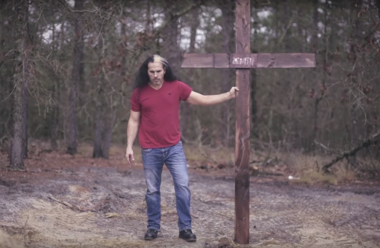 Shown from the other end of the call, Hardy said the two were the only ones able to pull “Zenith” from his body along with imagery of Hardy burying the past and recovering from his mid-February attack at the hands of Randy Orton. He wrote down “Bring Damascus to life” among other things as a way to “get his affairs in order”. Hardy is shown looking sadly at a dug grave while holding a wooden cross that says ‘Zenith’ as the Bucks roll up. Hardy says, “Bucks of Youth, I knew you’d come” to close the video.