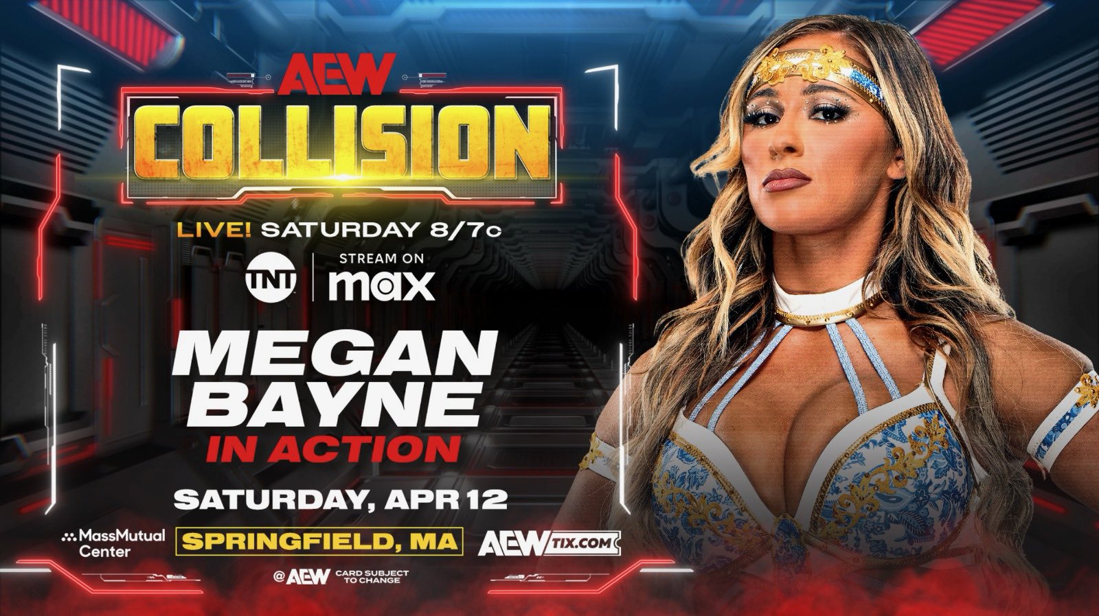 After challenging Toni Storm for the AEW Women’s World Championship at last Sunday’s Dynasty pay-per-view, Megan Bayne will be back in action on the Saturday, April 12 Collision. No opponent has been announced for Bayne.