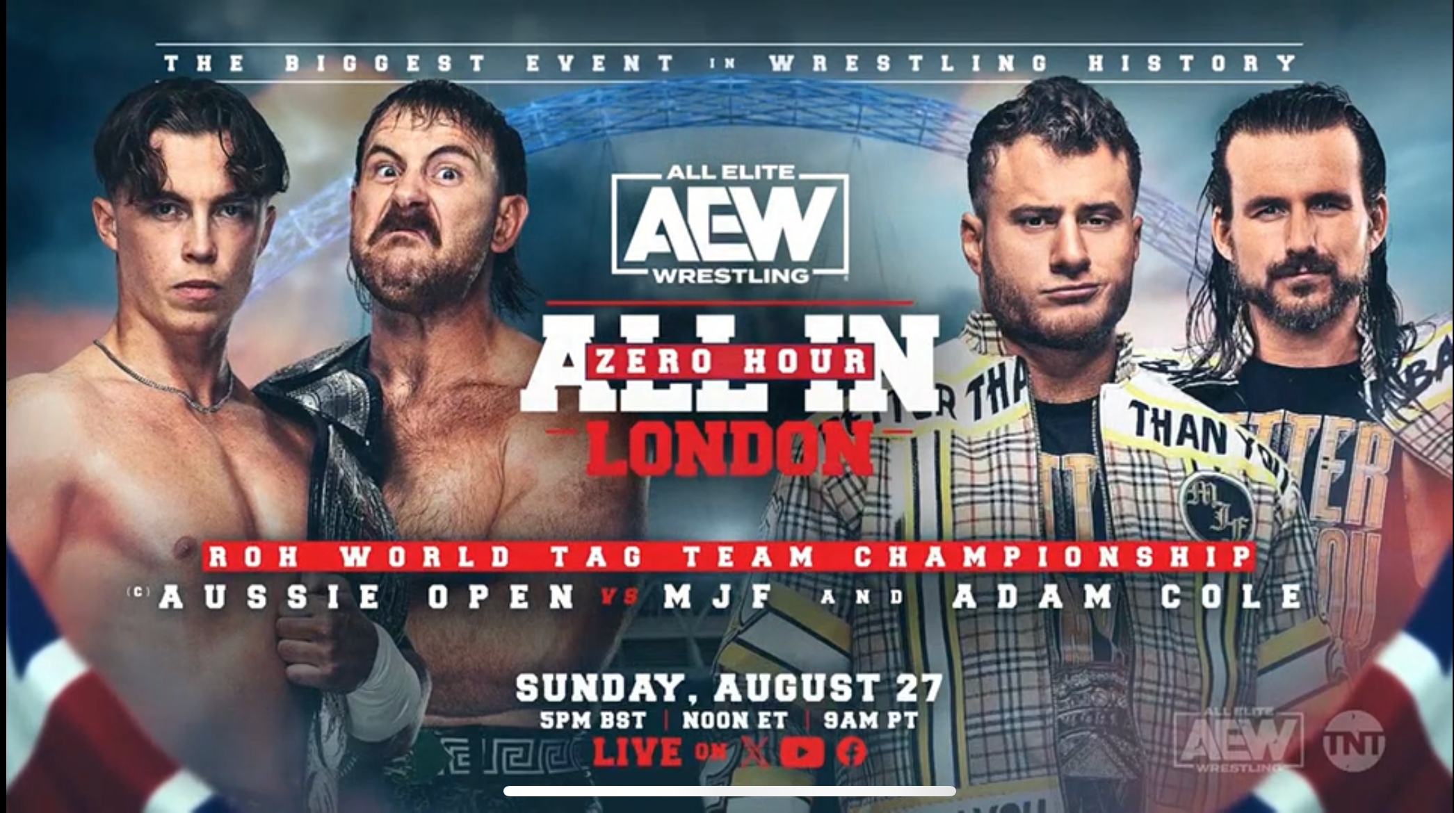 Hours before they will take each other on for the AEW World title, MJF & Adam Cole will challenge Aussie Open for the Ring of Honor Tag Team titles as part of the AEW All In Zero Hour pre-show.