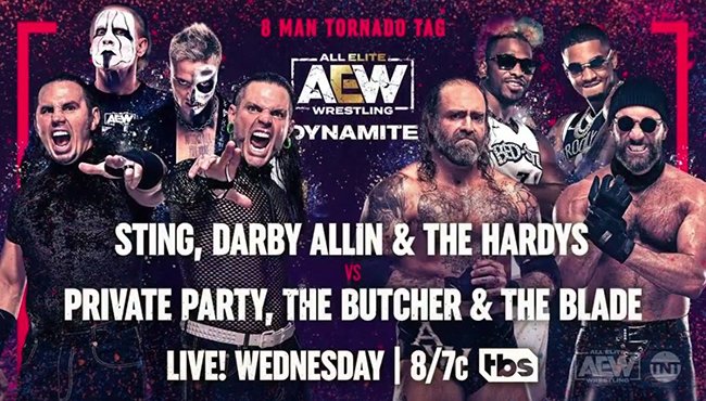 An eight-man Texas Tornado match was set up on tonight’s Rampage, with Sting, Darby Allin, and The Hardys taking on The Butcher, The Blade, and Private Party. Chris Jericho and Daniel Garcia will face Alex Reynolds and John Silver, and MJF will speak.