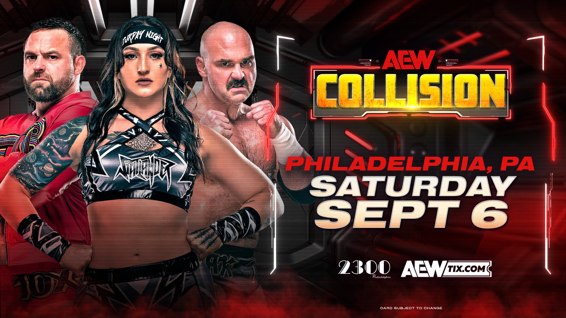Saturday’s Collision airs live from the 2300 Arena in Philadelphia as AEW’s residency in the former ECW Arena continues. The updated lineup: