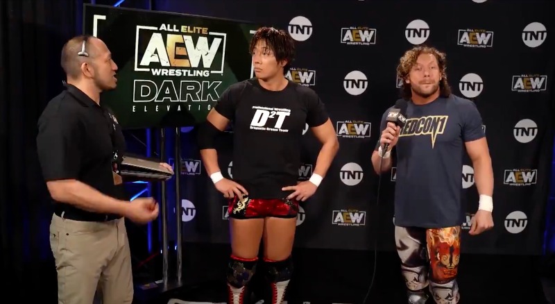 AEW World Champion Kenny Omega broke the news to Konosuke Takeshita on Dark: Elevation that he will team with Michael Nakazawa on next week’s Elevation against Mike and Matt Sydal.