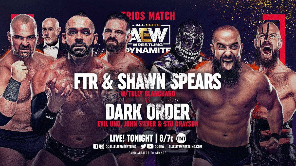 The Pinnacle (FTR and Shawn Spears) will team up to face The Dark Order (Evil Uno, Stu Grayson, and John Silver) in a trios match.