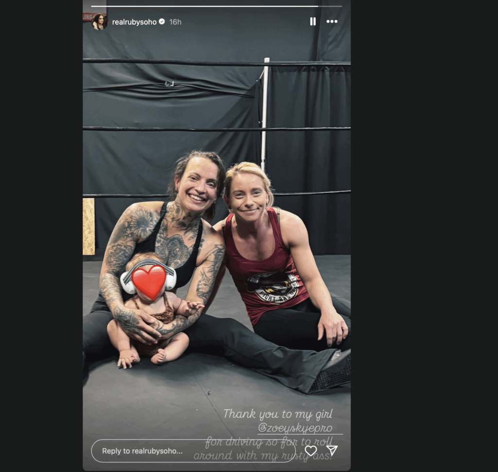 The AEW wrestler posted a photo of herself inside a wrestling ring to her Instagram Stories on Wednesday, thanking Zoey Skye for “driving so far” to train with her.