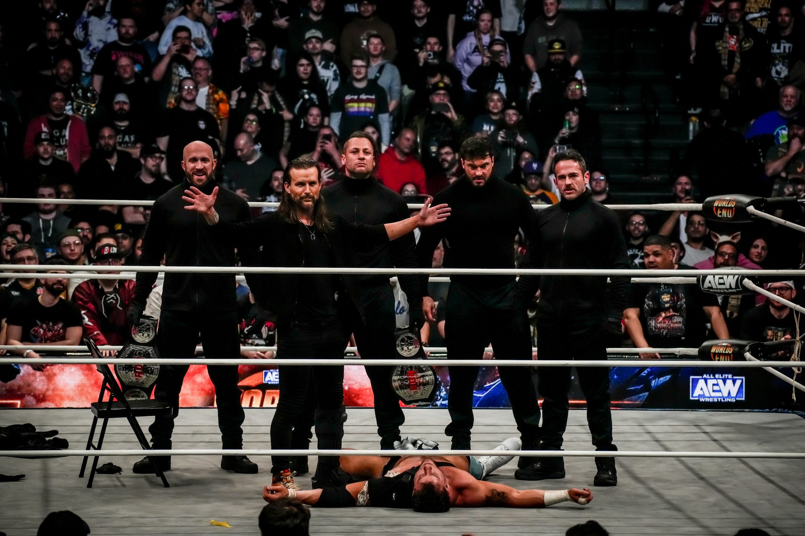 Cole consoled MJF afterward, leading to the four masked henchmen of the Devil to run out and attack. They grabbed both MJF and Cole with one henchman wielding a char and threatening to hit either one of them. MJF yelled to hit himself instead of Cole and then, the lights went out.