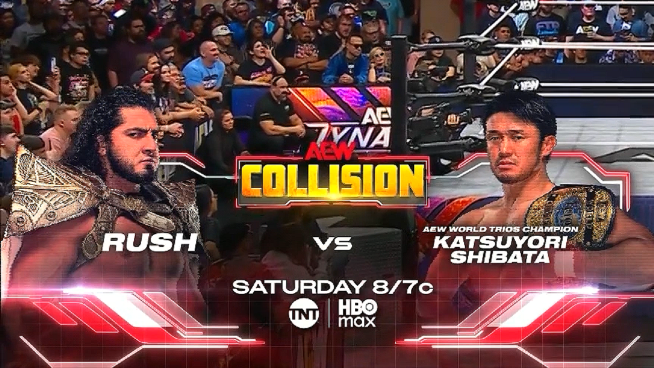 Saturday’s AEW Collision lineup includes Katsuyori Shibata vs. Rush, plus a promo from the new TNT Champion.
