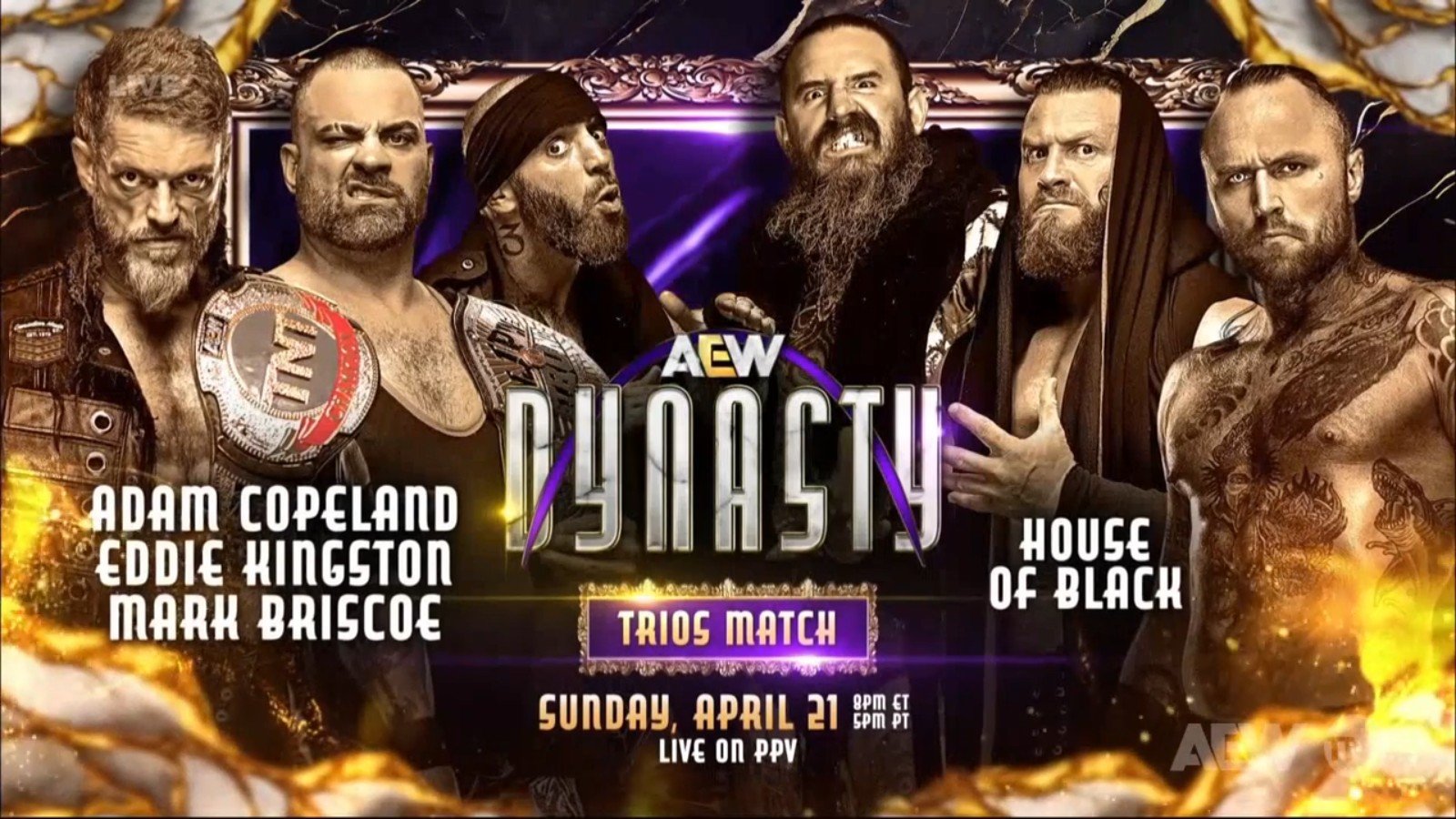 Adam Copeland will team with Eddie Kingston and Mark Briscoe to take on The House of Black. Copeland had retained the TNT Championship against Matt Cardona on Collision when the lights went out. Malakai Black appeared when they came back on, which led to Buddy Matthews attacking Copeland from behind. Briscoe and Kingston came out for the save. The match was then announced for April 21 in St. Louis, Missouri.