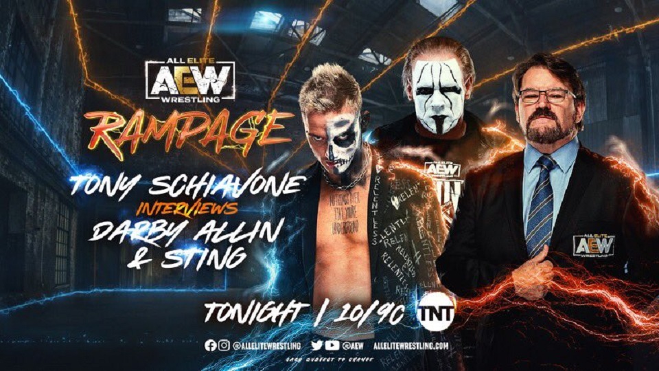 TONIGHT on #AEWRampage, @tonyschiavone24 will interview @Sting & @DarbyAllin, asking about the upcoming Holiday Bash December 22 where Stinger will be making his long-awaited return to Greensboro, where Sting had his first World Title match in 1988! IT’S STING on Rampage TONIGHT!”