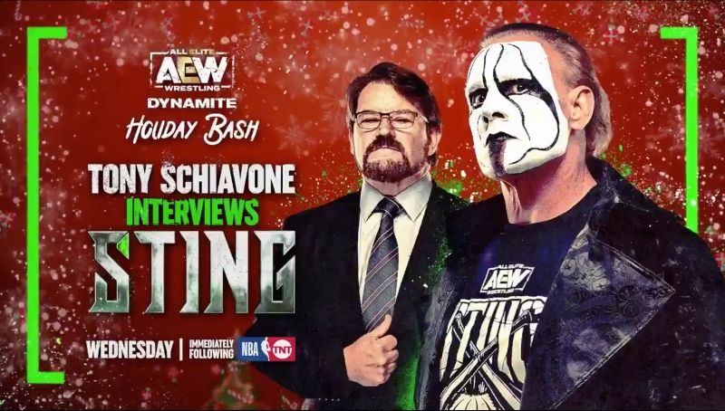 Sting will continue his run of AEW appearances as he will do an interview with Tony Schiavone this Wednesday on the Holiday Bash edition of Dynamite.