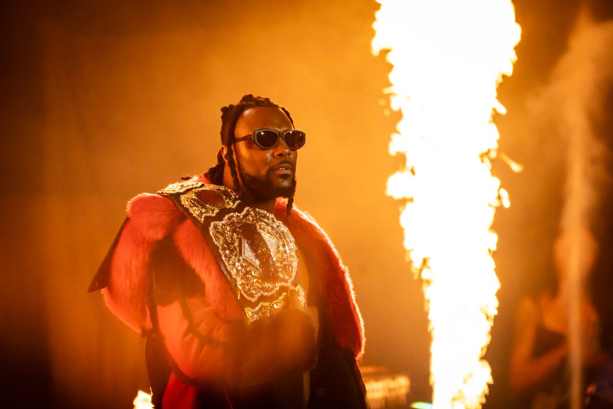 Don Callis then appeared and handed Ospreay a screwdriver to use on Strickland. Ospreay was reluctant and then Prince Nana confronted Callis, shoving him down. Ospreay then threatened to strike Nana with the screwdriver but thought better of it. He went back in the ring and Strickland hit a Drive-By and hit a Swerve Stomp for another close nearfall after new referee Aubrey Edwards appeared to make the count.