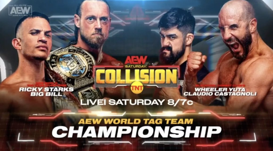 Ricky Starks & Big Bill are set to make their first defense of the Tag titles against Blackpool Combat Club’s Claudio Castagnoli & Wheeler Yuta on the Saturday, October 21 Collision show.