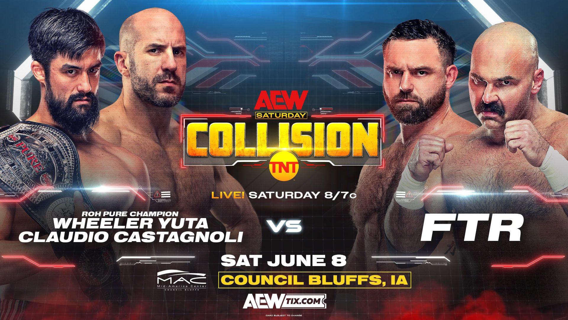 After making his return to the ring on Wednesday’s Dynamite for the first time in nearly five months, Wheeler Yuta will again be in action on Saturday’s Collision episode as he teams with Claudio Castagnoli against FTR’s Dax Harwood & Cash Wheeler.