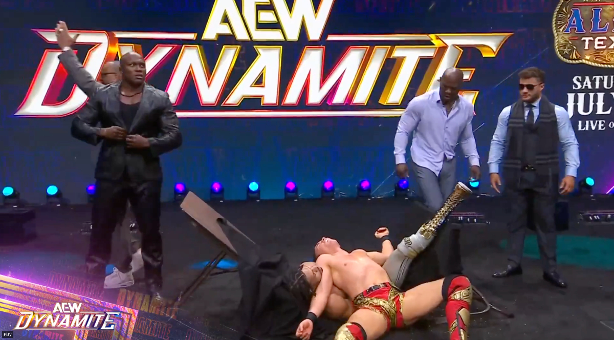 The match was made during Wednesday’s AEW Dynamite after Bailey and Knight defeated Ricochet & AR Fox, issuing a challenge to Shelton Benjamin & Bobby Lashley afterward. Joined by MJF and MVP, the champions then attacked and decimated the would-be challengers from behind, punctuating the violence by putting Knight on a table and chokeslamming Bailey on him, breaking the table in half.