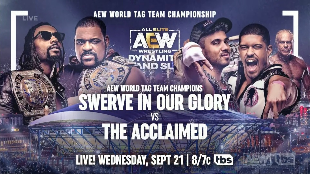A rematch between AEW Tag Team Champions Swerve In Our Glory and The Acclaimed is official for the Grand Slam edition of Dynamite on Wednesday, September 21st.