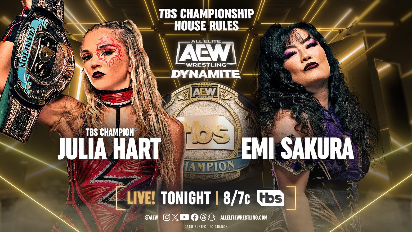 House Rules@TheJuliaHart vs @EmiSakura_gtmvA luminary with decades of experience Emi Sakura will fight one of wrestling's rising stars Julia Hart for the TBS Title in Julia's hometown Minneapolis, TONIGHT! pic.twitter.com/Bs1sNnrmHi