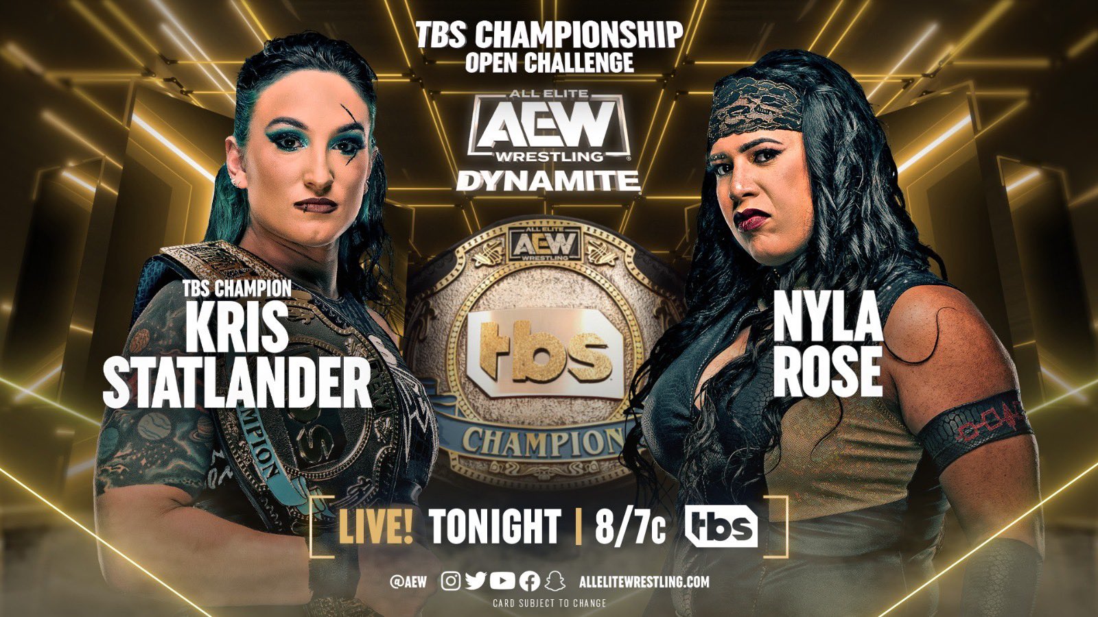 The new TBS Champion Kris Statlander will make her first ever title defense vs former World Champion Nyla Rose on Dynamite TONIGHT! pic.twitter.com/Pyx4IWWLB7