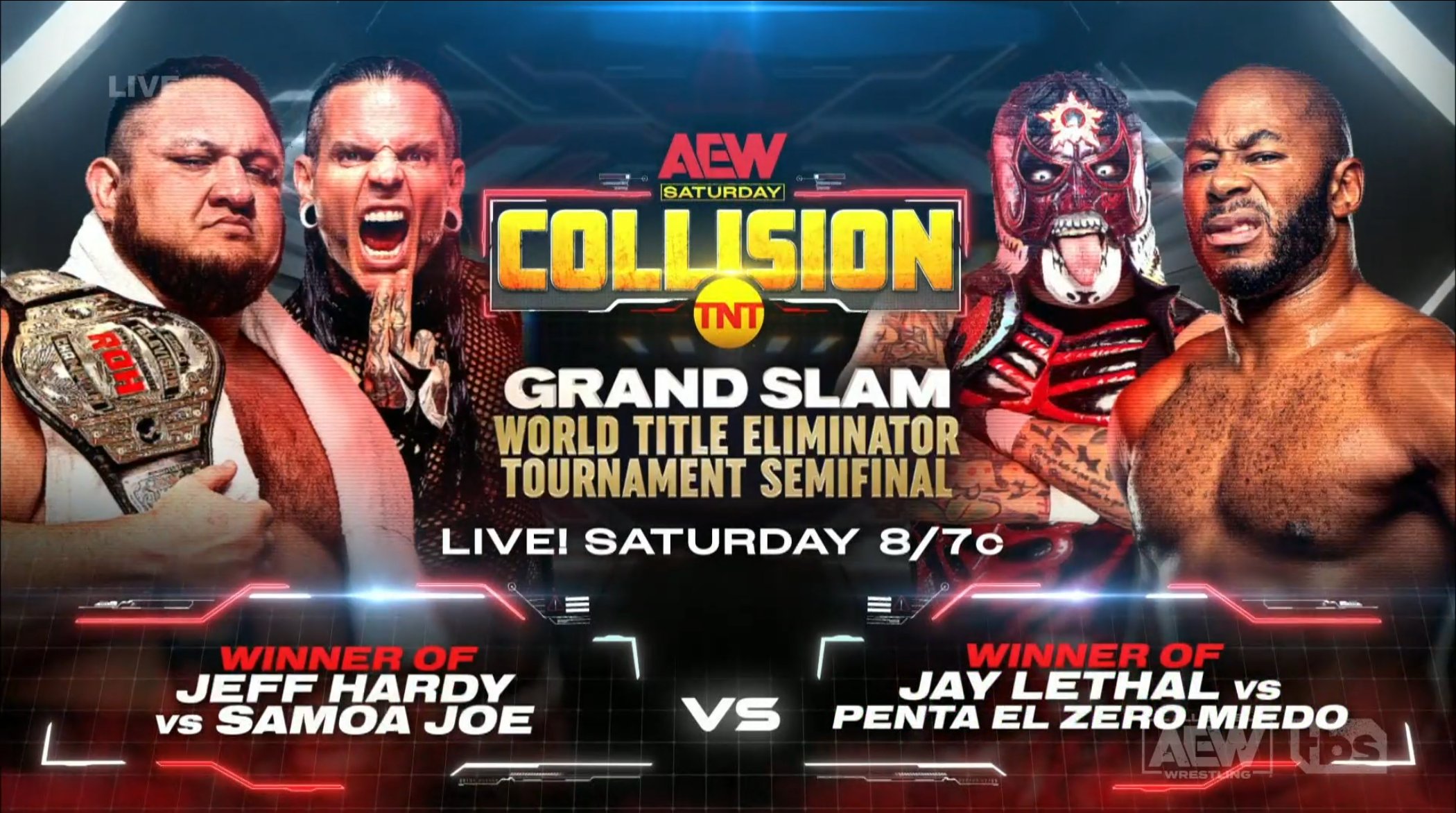 - Grand Slam World title eliminator semifinals: Samoa Joe or Jeff Hardy vs. Penta El Zero Miedo or Jay Lethal