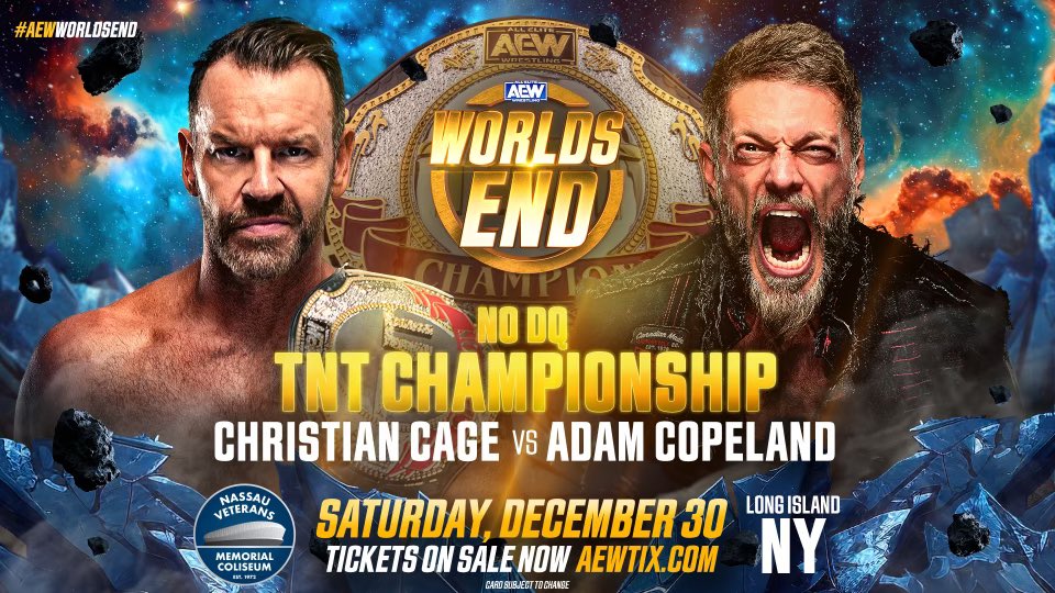 Christian Cage also accepted Adam Copeland’s challenge to a No Disqualification match for the TNT Championship at Worlds End. After Shayna Wayne explained why she helped Cage defeat Copeland earlier this month, Cage said he would accept Copeland’s challenge to a fight because to him, it’s not a challenge as he’s already beaten him.