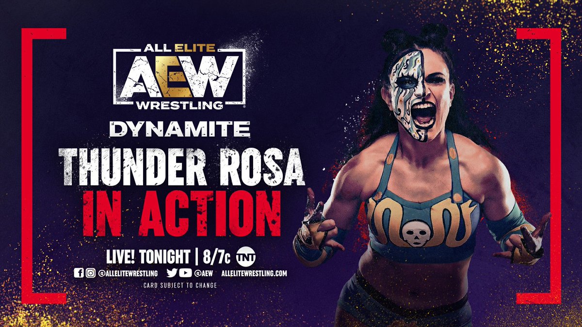 Thunder Rosa will return to action against an opponent to be named. This will be her first Dynamite in-ring action since defeating Baker in their unsanctioned match that aired on March 11th.