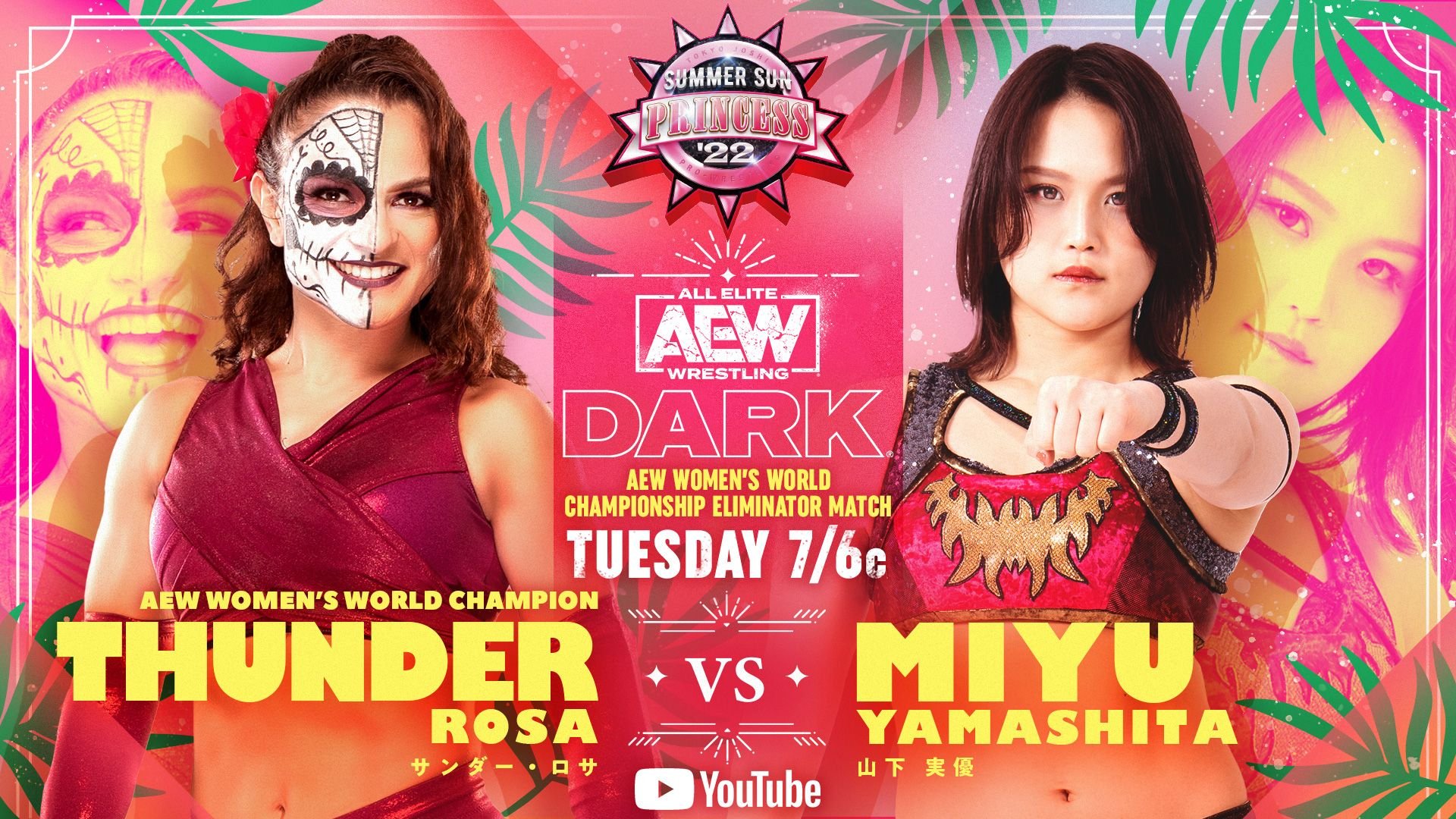 - AEW Women’s World Champion Thunder Rosa vs. Miyu Yamashita in a title-eliminator match (from Tokyo Joshi Pro Wrestling’s Summer Sun Princess 22)