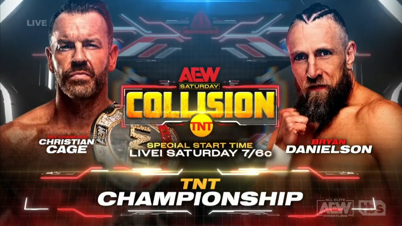 Danielson defeated Swerve Strickland at Dynamite Title Tuesday to become the number one contender to Christian Cage’s TNT Championship. It was announced as Title Tuesday kicked off that the title match was set for this Saturday, October 14 on Collision with a special 7 p.m. Eastern start time on TNT.
