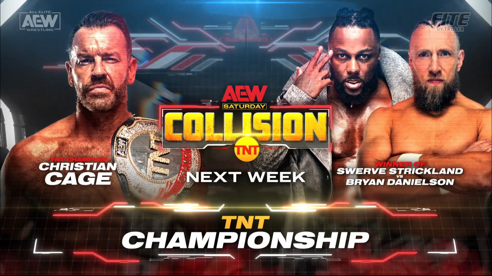 - TNT Championship: Christian Cage defends against either Swerve Strickland or Bryan Danielson