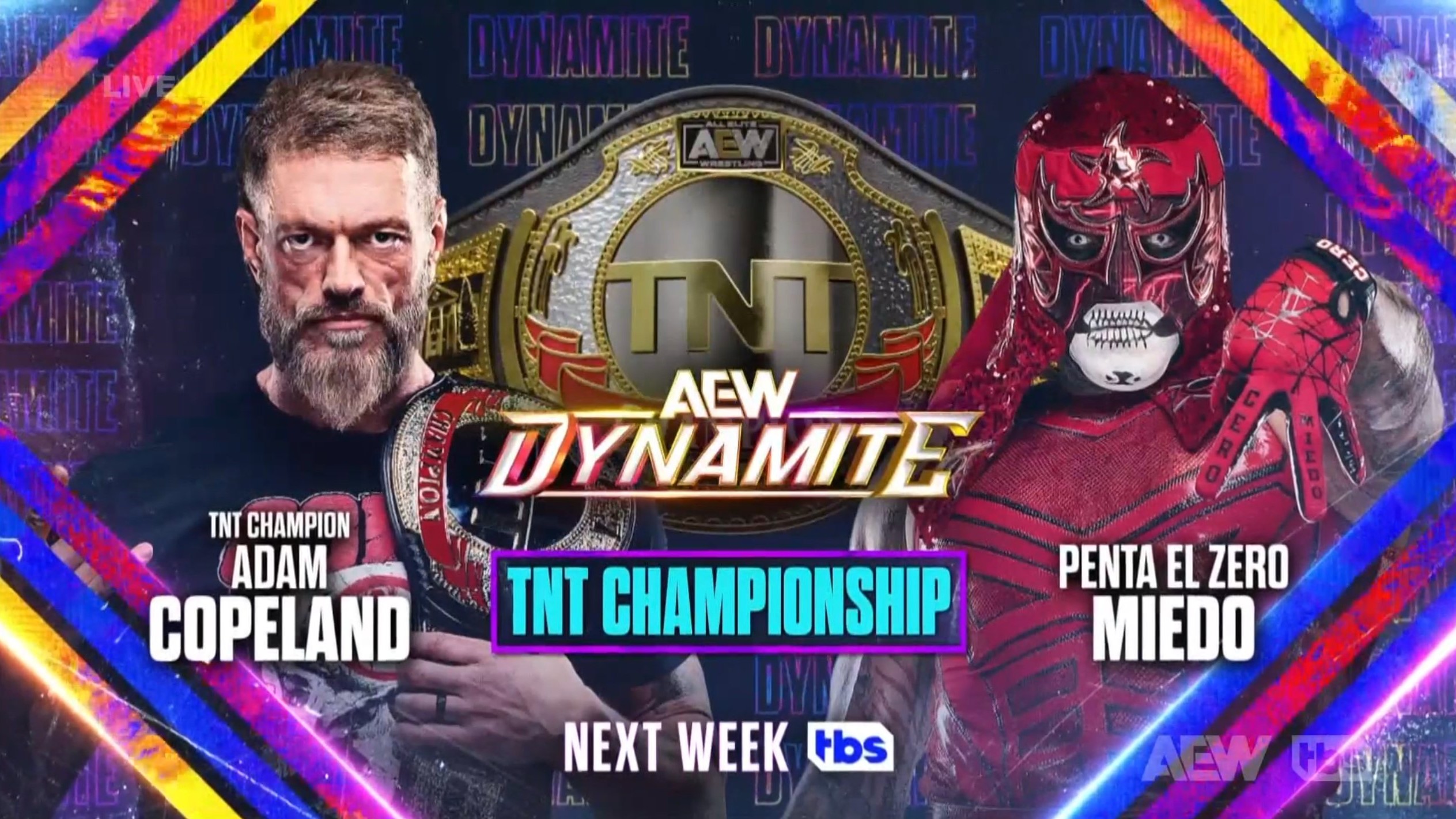 As revealed during this week’s show, TNT Champion Adam Copeland will defend his title against Penta El Zero Miedo on the April 10 Dynamite.