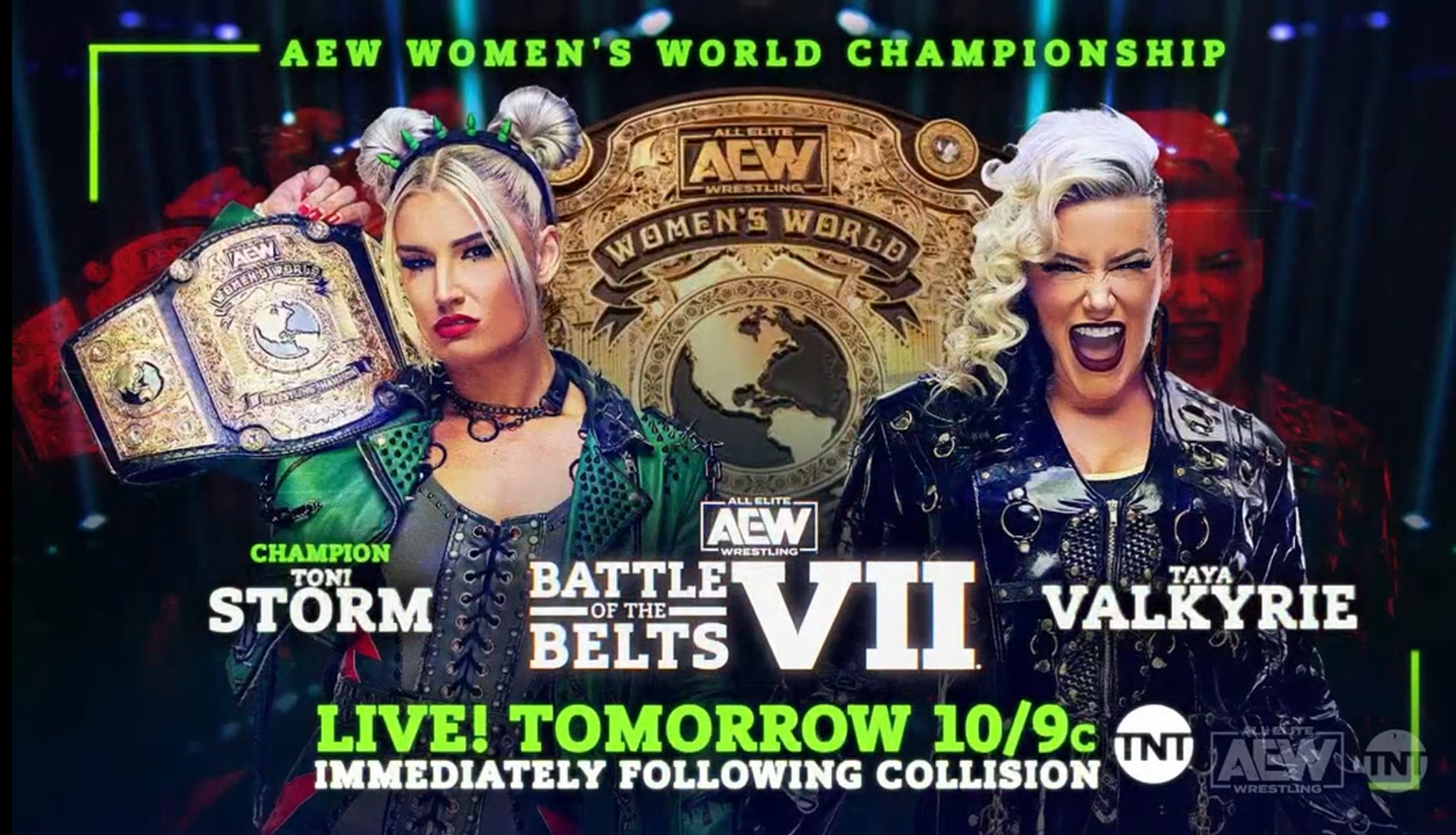 - AEW Women’s Champion Toni Storm defends against Taya Valkyrie