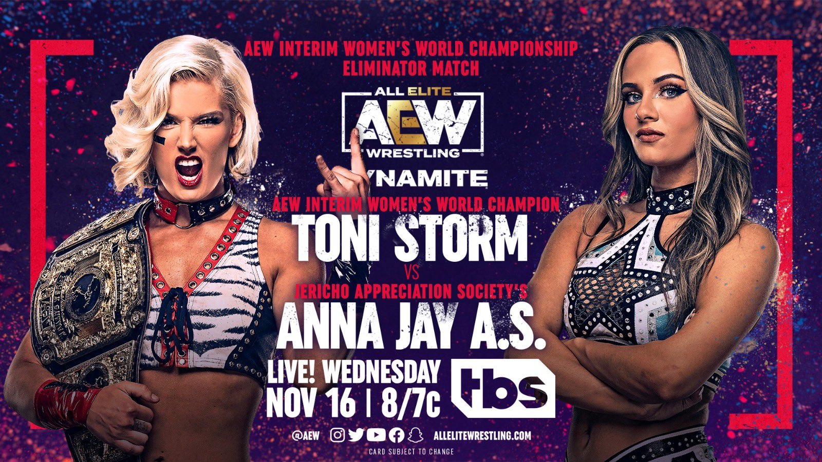 - Interim AEW World Women’s Championship eliminator match: Toni Storm vs. Anna Jay