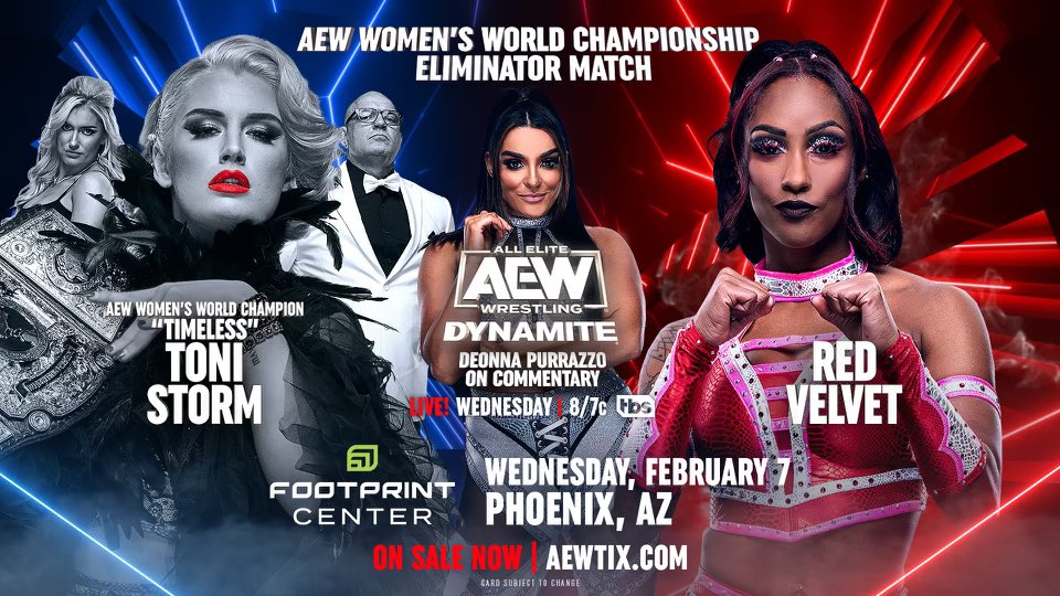 - Women’s World title eliminator: Toni Storm vs. Red Velvet w/Deonna Purrazzo on commentary