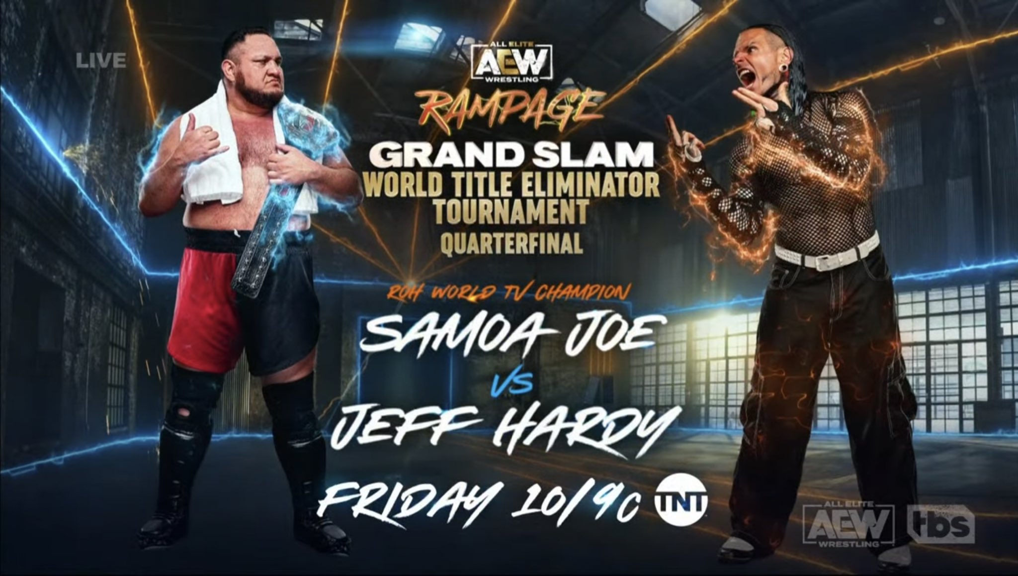As revealed during Wednesday’s Dynamite, Samoa Joe will face Jeff Hardy on Friday’s Rampage episode in a Grand Slam World title eliminator quarterfinal. The winner will advance to the semifinals on Saturday’s Collision show.