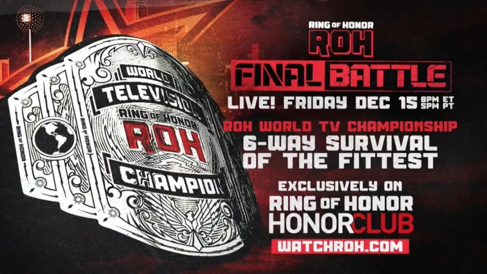 ROH Final Battle, Friday, December 15, 7 p.m. Eastern time on Honor Club —